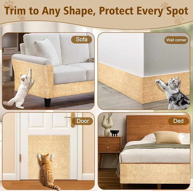 - 【DIY and Easy to Use】 This flexible cat scratch protector can be trimmed into any shape or size to fit your needs. Simply peel and stick—no tools, pins, or complicated setup required. Use it on sofa arms, couch backs, or near cat scratching posts to protect different areas with ease.