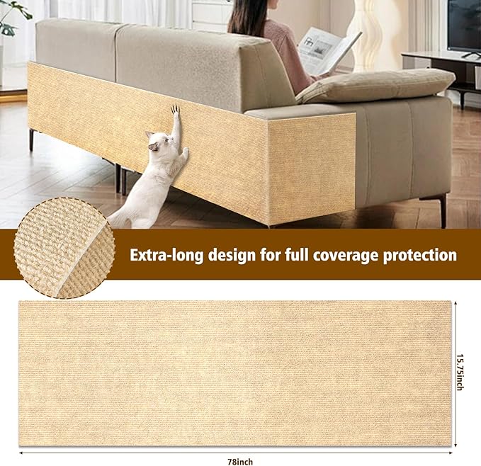 Cat Scratch Furniture Protector – DIY Climb Scratch Mat,Cat Scratch Pad, Couch Protector from Cat Claws, Trimmable Self-Adhesive Carpet for Indoor Sofa, Furniture (Beige, 78.7" x 15.8")