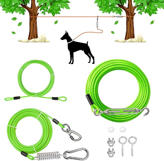 - Built with remarkable sturdiness, our Dog Tie-Out Cable Runner System reliably contains even the most energetic dogs, keeping them safely within your sight at all times. Enjoy hands-free convenience during camping trips or outdoor activities, with complete peace of mind that your dog won’t wander off