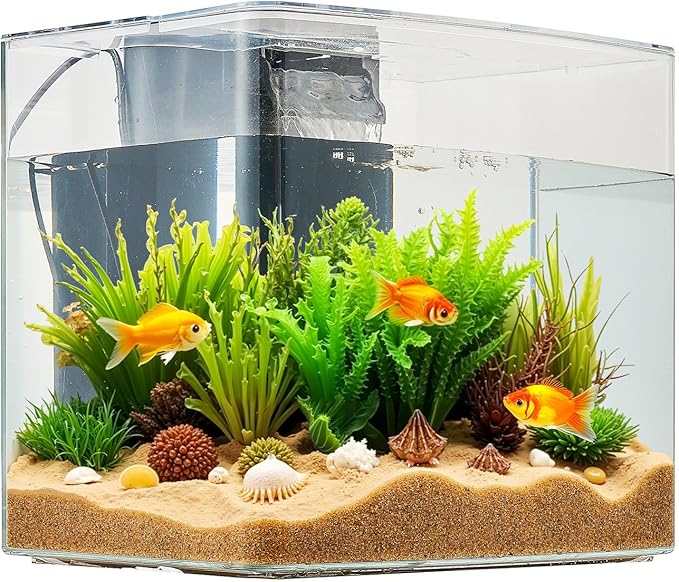 - Smart Multi-Functionality: With self-cleaning, oxygenation, and water circulation, this aquarium reduces water changes and allows for easy customization with decorations and plants, helping you quickly become a fishkeeping expertNOTE: For fish over 1 inch (shrimp not recommended); Replace filter cotton every 4-8 weeks (or based on tank cleanliness); Recommended for 7-9 small fish, 1-2 inches long