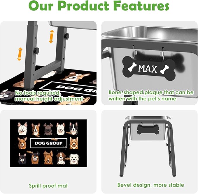 - 【PERSONALIZATION & EASY TO USE】All accessories and instructions are included in the package, easy and quick to assemble, save your time and energy. It also comes with a cute bone name tag that you can DIY by yourself to add a personalized touch to your dog's table