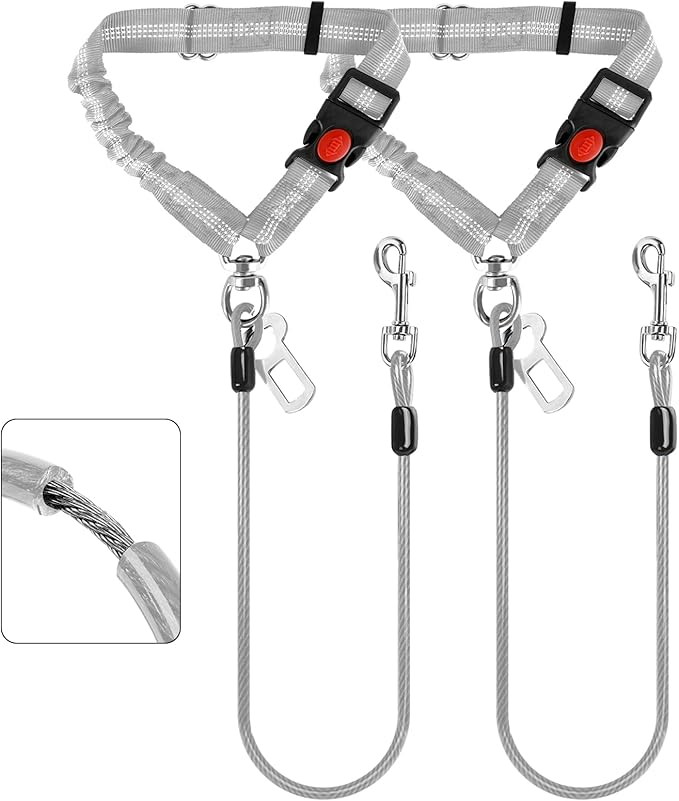- 【Heavy-Duty & Easy To Use 】: The adjustable reflective nylon headrest loop fits any vehicle, while 360° swivel buckles prevent tangling. Includes 3 metal clips + a lockable plastic buckle for secure attachment. Only takes seconds to clip to your pet and buckle him in.