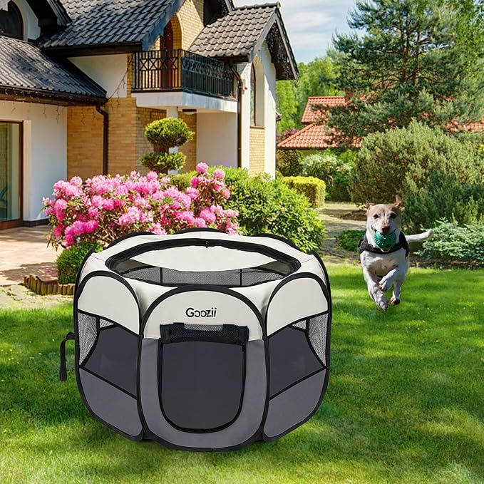 - 【BONUS INCLUDED】: The Portable Pet Play Pen comes along with a convenient carrying case that can easily store your playpen and accessories。Ideal for Travel. Toss your dog tent in the car trunk, to have it always at hand or fold and store it when not in use.