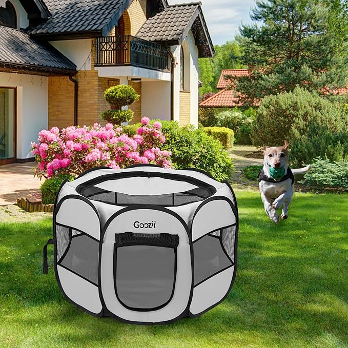 - 【BONUS INCLUDED】: The Portable Pet Play Pen comes along with a convenient carrying case that can easily store your playpen and accessories。Ideal for Travel. Toss your dog tent in the car trunk, to have it always at hand or fold and store it when not in use.