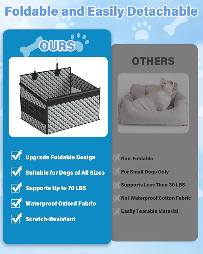 - ✅ Spacious Comfort for Dogs: Measuring 27.5*21.6*20 inches, this large dog car seat expands your vehicle’s back seat area by approximately 40%, offering more space for your pet to move and rest comfortably. Ideal for both short trips and long drives, it helps reduce fatigue and anxiety.