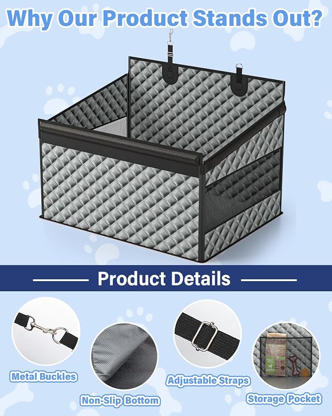 - ✅ Comprehensive Protection: The Instraella dog car seat features a 360° wraparound protection design that keeps your pet safe and secure during sudden stops or sharp turns. With its non-slip base and sturdy structure, this dog seat for car remains stable at all times, creating a reliable and secure travel environment for your pets.
