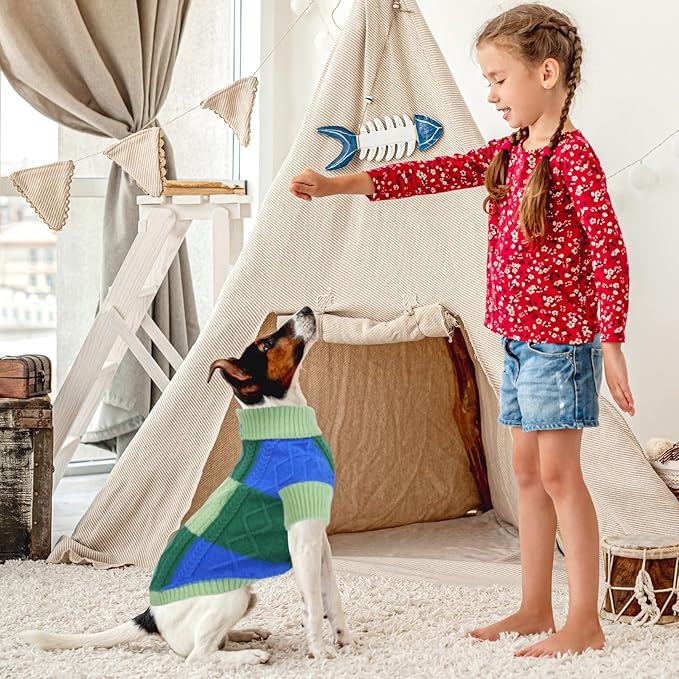 Turtleneck Pet Sweaters for Dogs Boys or Girls,Color Inlay and Moving Needle Pattern Dog Sweater,Pet Clothes,Dog Sweaters,Suitable for Various Breeds Dogs or Sizes (Green Group,S)