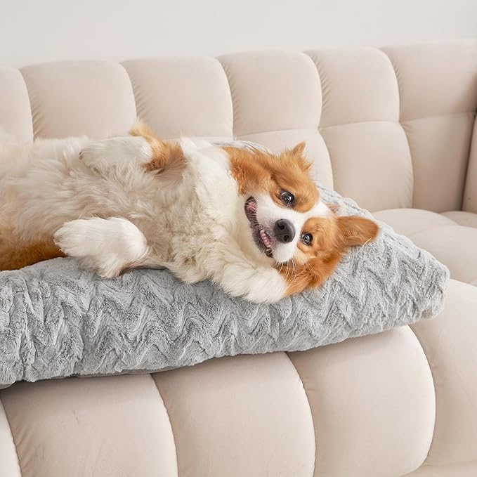 - Reversible Design for Year-Round Comfort: Features 3D soft faux fur (winter & autumn) and breathable linen-like fabric (spring & summer), with distinct textures for year-round use. The winter-autumn side is ultra-soft, comfortable, non-shedding—soothing dogs, easing anxiety, improving sleep. The spring-summer side is cool, breathable, non-lint-sticking, solving faux fur's stuffiness.