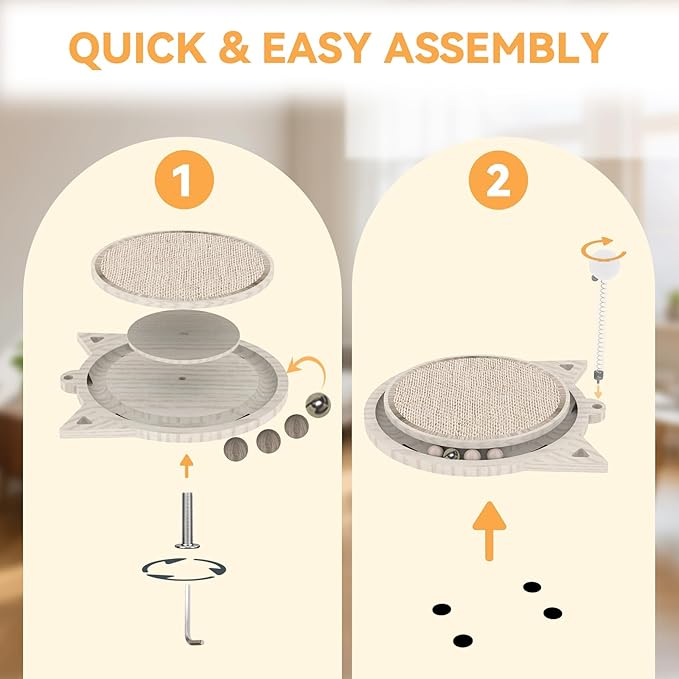- Quick & Easy Assembly:No extra tools needed! Just screw the parts together (hardware included) and let the fun begin. The clear instructions make setup a breeze, so your cat can start playing in minutes.
