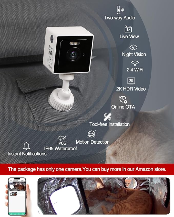 - ๐๐๐ฆ๐๐ซ๐ ๐๐ฎ๐ฉ๐ฉ๐จ๐ซ๐ญ-(๐๐ก๐ ๐ฉ๐๐๐ค๐๐ ๐ ๐ก๐๐ฌ ๐จ๐ง๐ฅ๐ฒ ๐จ๐ง๐ ๐๐๐ฆ๐๐ซ๐.๐๐จ๐ฎ ๐๐๐ง ๐๐ฎ๐ฒ ๐ฆ๐จ๐ซ๐ ๐ข๐ง ๐จ๐ฎ๐ซ ๐๐ฆ๐๐ณ๐จ๐ง ๐ฌ๐ญ๐จ๐ซ๐.)Our heated cat house has built-in two support points for cameras both inside and outside.So even when you're โโaway/outโโ, โโyou won't miss any moment of your cat.โโSimply โโgrab your phoneโโ, open our app, โโandโโ you can โโcheck in on your kitty anytime.โโ