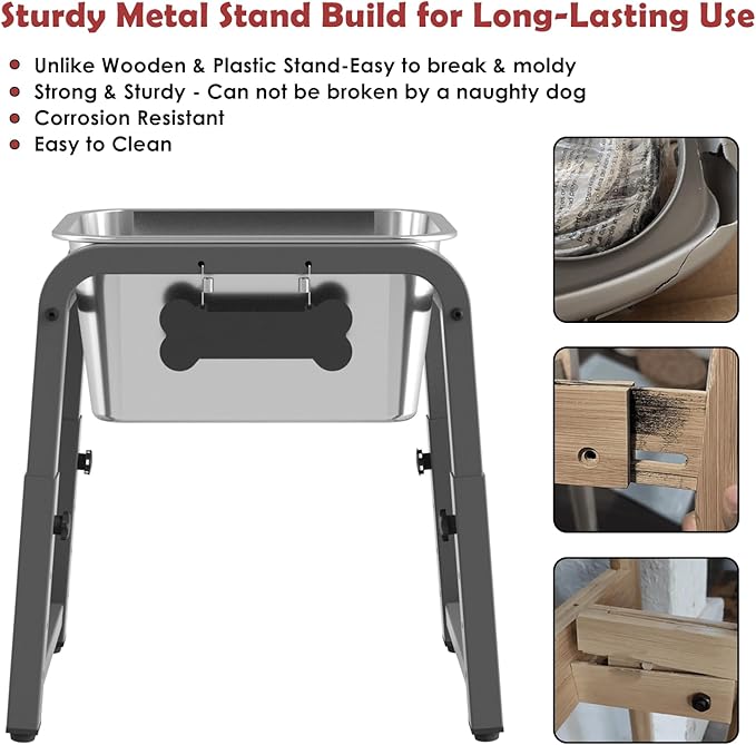 - 【DURABLE MATERIAL AND CLEANING CONVENIENCE】The water bowl is made of rust-resistant, dishwasher-safe stainless steel, which is healthier and more durable than plastic or ceramic. The stand is made of sturdy metal, which is durable in outdoor or humid environments