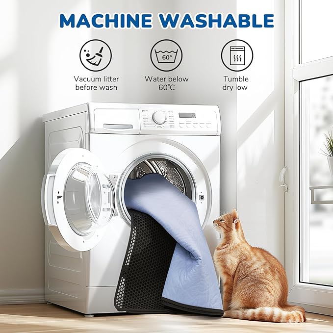 - Machine Wahable and Easy to Clean: Made of felt and fabric. After vacuuming the cat litter, just put the mat in the washing machine, freeing your hands, avoiding touch with urine and litter, saving time and energy. 3-side opening design makes cleanup a lot easier. No need to get dirty hands to dump the litter like an envelope-opening cat litter mat and button-attached cat litter mat. Just lift the upper layer and clean it with a broom of vacuum