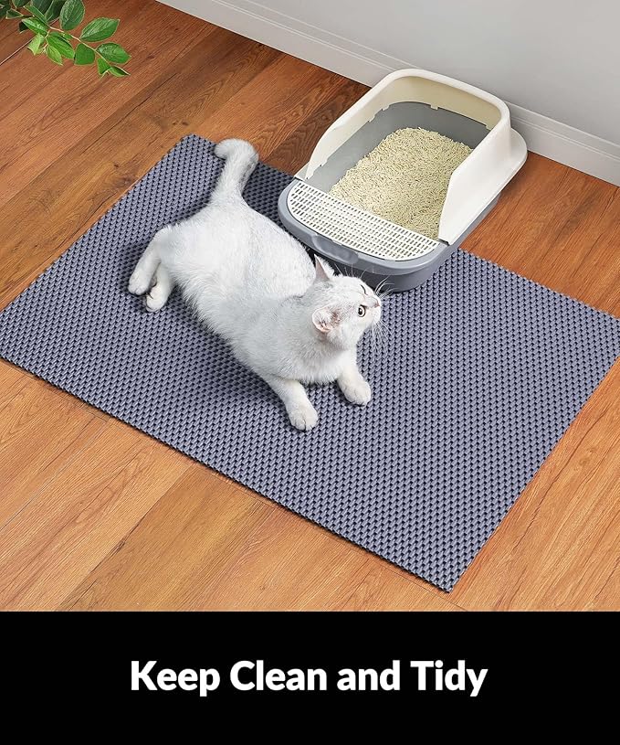 Cooyes Cat Litter Mat - Cut to Fit Any Place, 47"x35" Extra Large Litter Trapping Mat for Litter Box, Easy to Clean, Waterproof & Non-Slip Kitty Pad, Scatter Control to Protect The Floor (Grey)