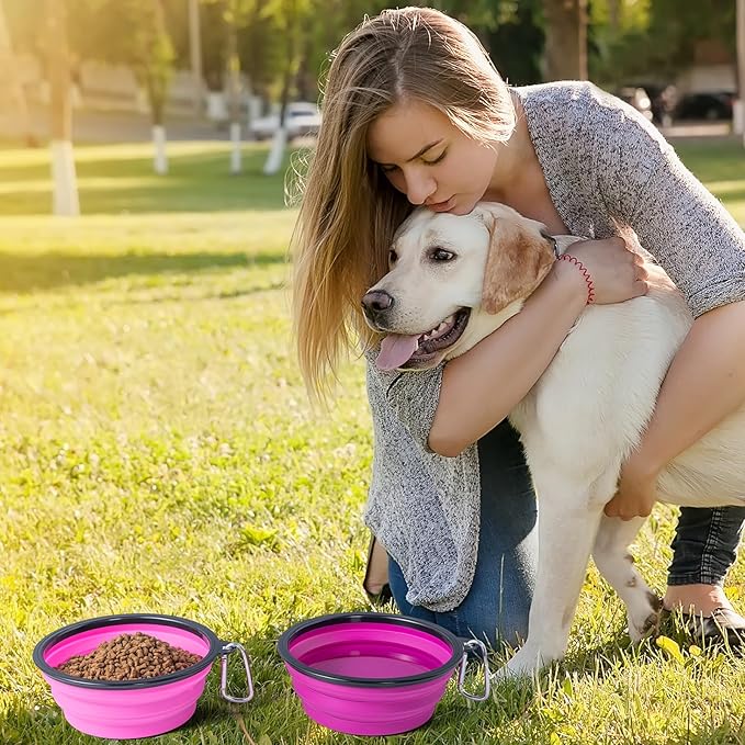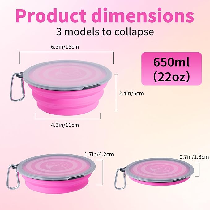 - WIDELY USED PET BOWLS: This collapsible dog travel bowl is included climbing buckle that can attach to belt loop, backpack, leash or other locations.Easy to fold and expand. It's suitable for pet walking, traveling, hiking, camping, outdoor or indoor use for dogs cats food & water feeding.