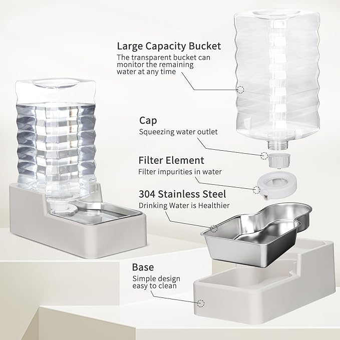 - Smart Gravity Feed & Effortless Refilling: Engineered with an efficient gravity-fed system, this dispenser automatically maintains the ideal water level in the stainless steel bowl as your pet drinks. Spills are minimized, and your pet enjoys a comfortable, natural drinking position. Perfect for pet parents with busy schedules—it’s like having a caring assistant for your furry family members!