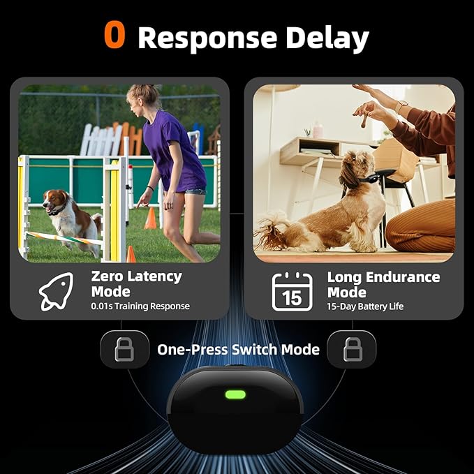 - 【Innovative Training Modes】Offers a total of 198 adjustable levels for precise training, including sound, vibration, and shock modes. Features a one-press switch for zero latency mode and long endurance mode, effectively adapting to various training scenarios. Each package includes two collars, allowing you to train two dogs at once by controlling both collars with the same remote.