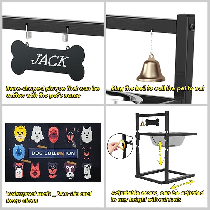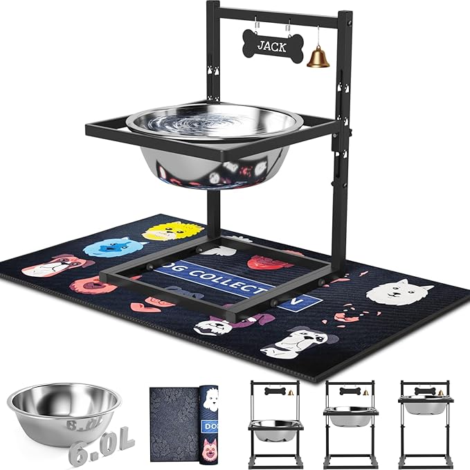 - EASY INSTALLATION, COMPLETE ACCESSORIES: The set includes: 1 elevated dog bowl stand, 1 6L stainless steel food bowl, 1 splash mat, and a full set of installation accessories. Assembly takes just 5 minutes with no additional tools required—effortless and hassle-free