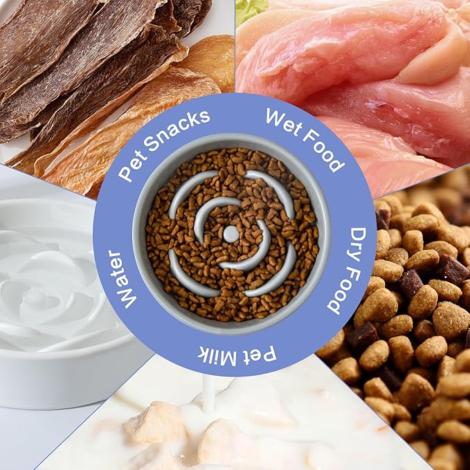 - Heavyweight & Non-Slip Base: This ceramic slow feeder dog bowl measures 6"W * 1.77"H" and can hold up to 11oz ≈ 340ml and weighs up to 0.7kg (about 1.54 lbs), suitable for different breeds of cats and small dogs. Stays firmly in place, preventing spills and messes, even with enthusiastic eaters.