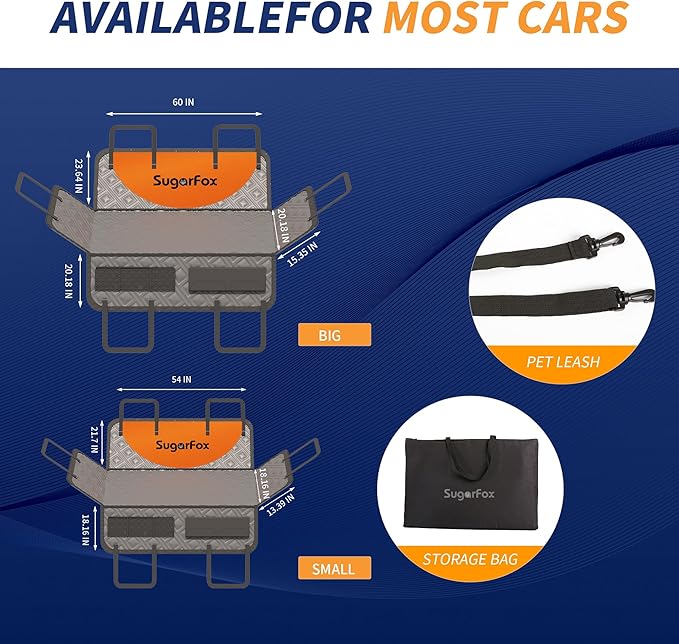 - 【Suiable For Most Vehicle】: Our backseat extender for dogs measures 20.18" x 60"(hard bottom size), fitting most cars' back seats, SUVs, and small trucks. Coming with a dog safety belt and storage bag, it brings you more convenience.