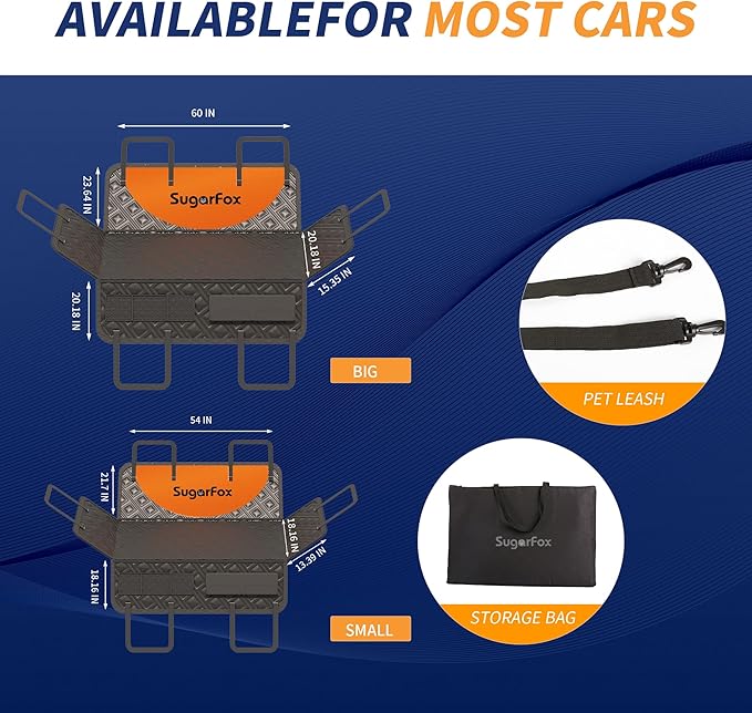 - 【Suiable For Most Vehicle】: Our backseat extender for dogs measures 20.18" x 60"(hard bottom size), fitting most cars' back seats, SUVs, and small trucks. Coming with a dog safety belt and storage bag, it brings you more convenience.