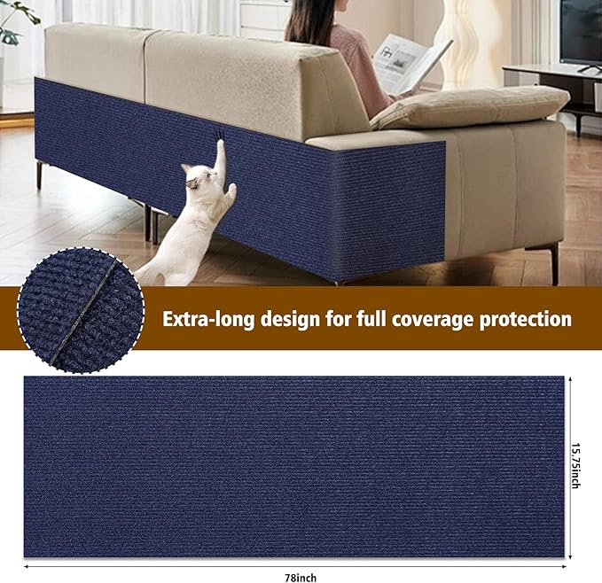 Cat Scratch Furniture Protector – DIY Climb Scratch Mat, Couch Protector from Cat Claws, Trimmable Self-Adhesive Carpet for Sofa, Furniture, Cat Tree (Dark Blue, 78.7" x 15.8")