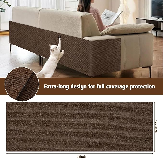 Cat Scratch Furniture Protector – DIY Climb Scratch Mat, Couch Protector from Cat Claws, Trimmable Self-Adhesive Carpet for Sofa, Furniture, Cat Tree (Brown, 78.7" x 15.8")