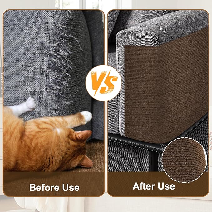- 【DIY and Easy to Use】 This flexible cat scratch protector can be trimmed into any shape or size to fit your needs. Simply peel and stick—no tools, pins, or complicated setup required. Use it on sofa arms, couch backs, or near cat scratching posts to protect different areas with ease.