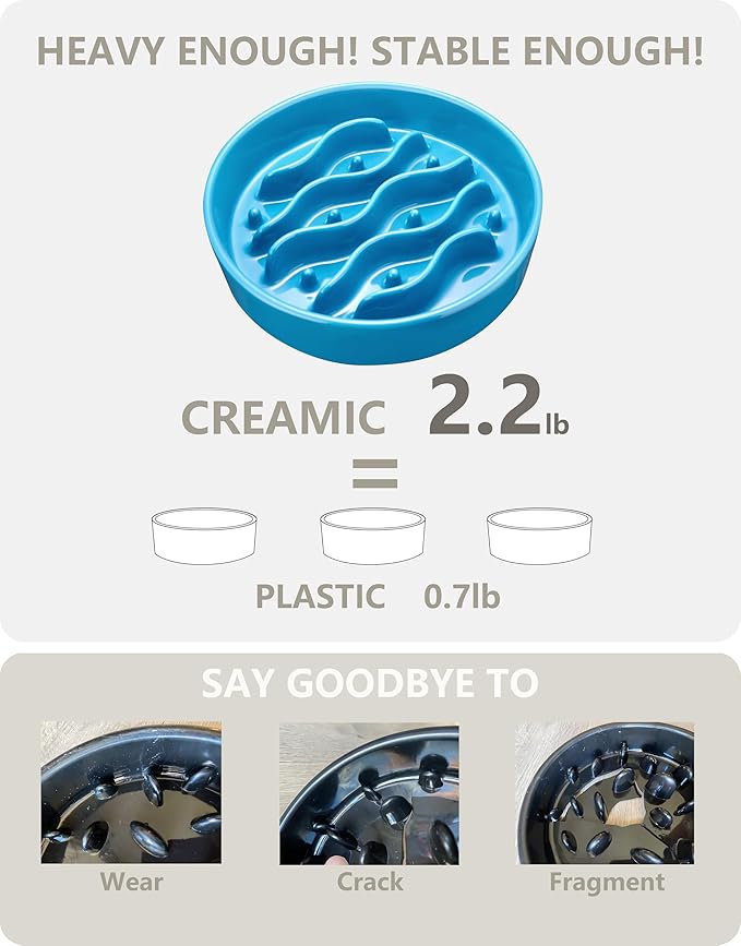 Ceramic Slow Feeder Dog Bowls for Medium and Large Dogs, 2.0 Cups Dog Slow Feeder for Fast Eater, 30oz, 8in, Baby Blue