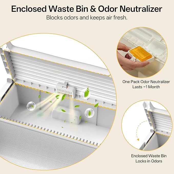- 🛡️ EVERYTHING YOU NEED, BACKED BY SUPPORT: Your purchase includes everything to get started: 30 custom-fit waste bags and 3 deodorizer blocks. Rest easy with our 1-year warranty and 24/7 customer support from our dedicated team, ensuring a hassle-free experience for you and your cat.