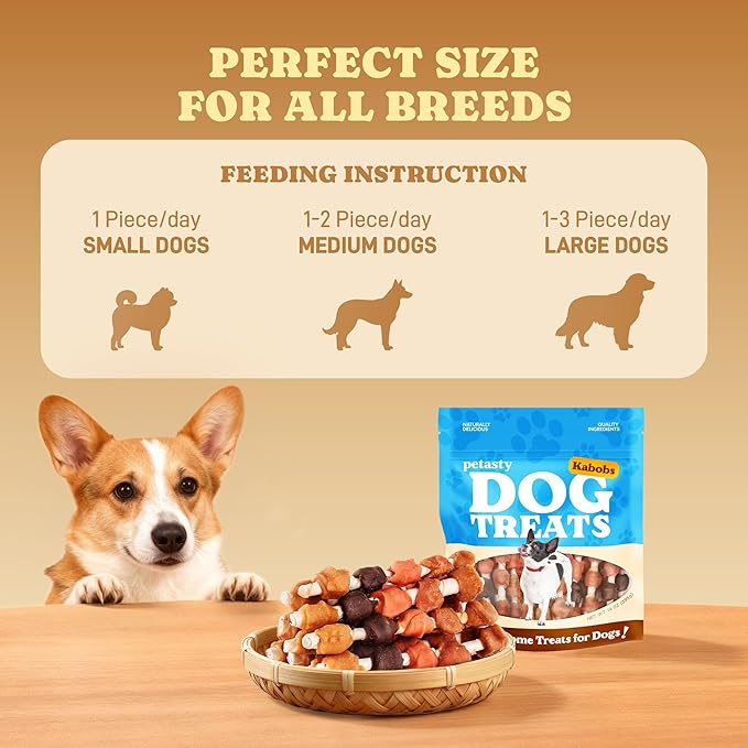 - Convenient for Training, Rewards & Daily Feeding:Each 5-inch kabob snacks is easy to feed for training, rewards, behavior reinforcement, or daily dog treats. Convenient to carry for outdoor walks. SGS tested in the USA to ensure safe, high-quality dog treats.