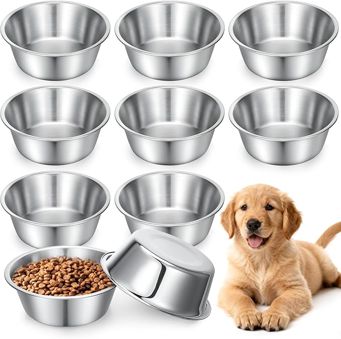 10 Pcs Stainless Steel Dog Bowls Bulk, 6.9 Inch Thickened Metal Food and Water Dish Basic Pet Feed Bowl Replacement Pet Bowls for Dogs Cats(29 Oz, Dishwasher Safe)
