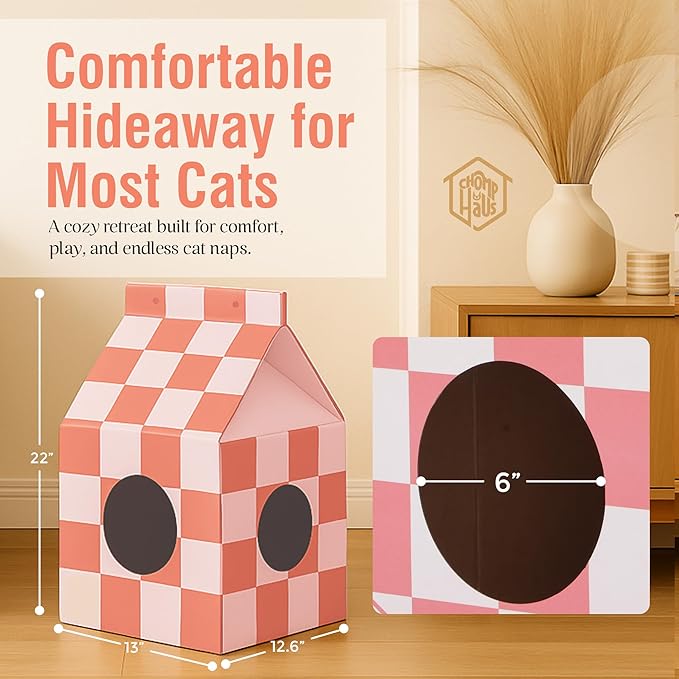 - STYLISH CAT HIDEAWAY – Cotton Candy checkered design adds a cozy, modern touch to your home while giving your cat a comfortable space to lounge, hide, and play.