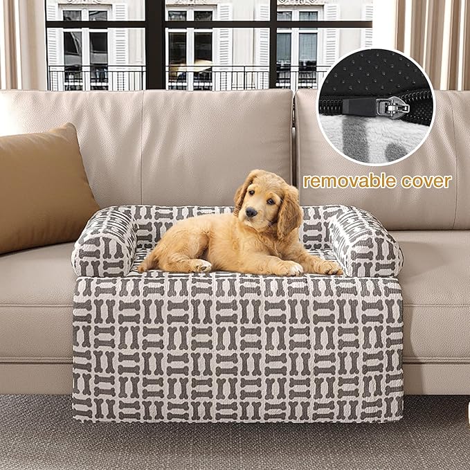 Orthopedic Dog Bed for Large Dogs, Washable Sofa Protector Pet Bed with 3-Sided Bolster, Shredded Memory Foam & Plush Support, Non-Slip Bottom for Medium & Small Dogs