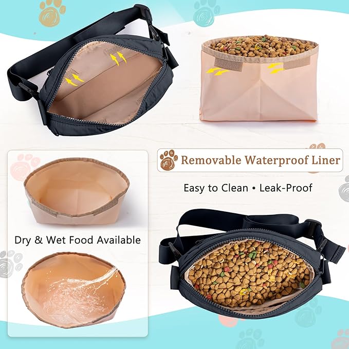 • Removable Waterproof Liner – Perfect Treat Bag for Dog Training Sessions: The spacious dog treat holder features a removable waterproof liner that stands upright and keeps kibble, training treats, or puppy snacks fresh. Easy to clean and ideal for treat pouches used during clicker training.