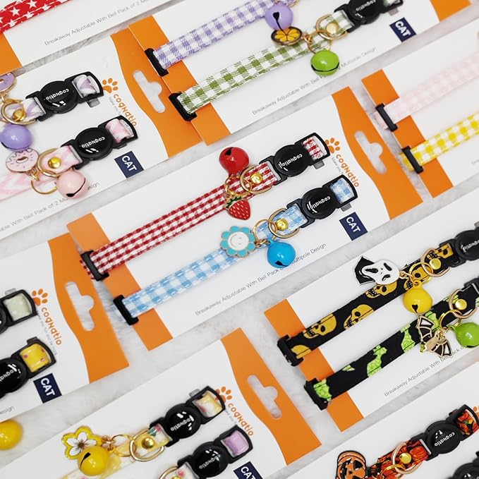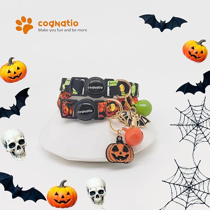 2 Pack Cotton Breakaway cat Collars with Bell,Safety Quick Release Pendant Cute Kitten Collar,Adjustable 20-30cm (Halloween1, 20-30cm)
