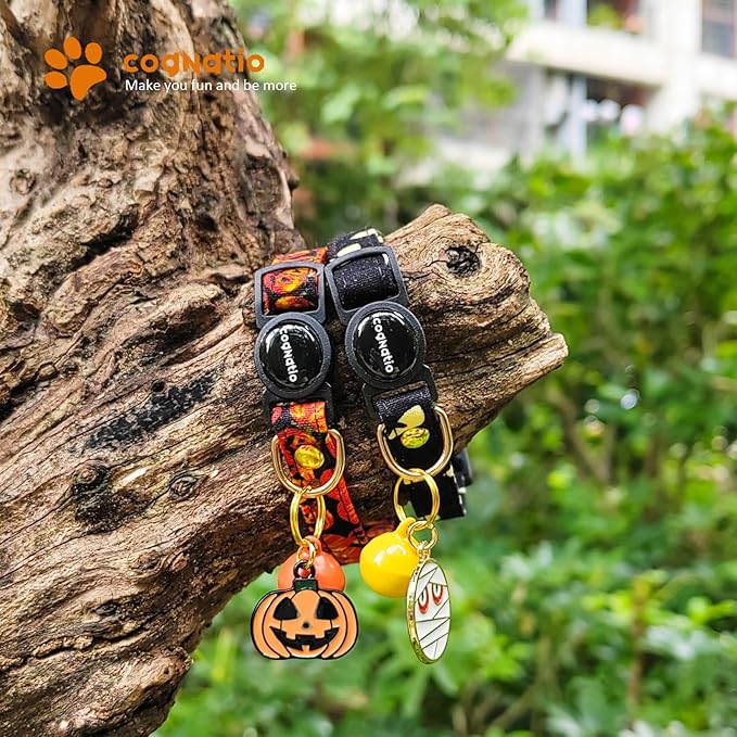 2 Pack Cotton Breakaway cat Collars with Bell,Safety Quick Release Pendant Cute Kitten Collar,Adjustable 20-30cm (Halloween3, 20-30cm)