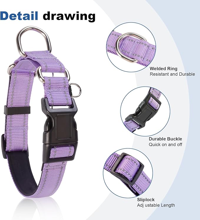 Reflective Martingale Dog Collars. Dog Collar with Quick Release Buckle. Adjustable Soft Padded Breathable Nylon Pet Collar Suitable for Puppies for Small Medium Large Dogs.