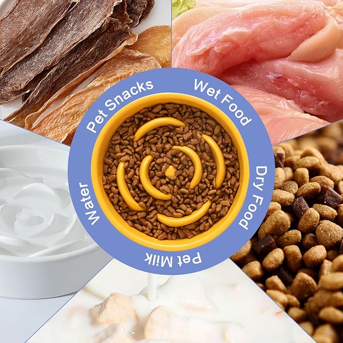 - Heavyweight & Non-Slip Base: This ceramic slow feeder dog bowl measures 6"W * 1.77"H" and can hold up to 11oz ≈ 340ml and weighs up to 0.7kg (about 1.54 lbs), suitable for different breeds of cats and small dogs. Stays firmly in place, preventing spills and messes, even with enthusiastic eaters.