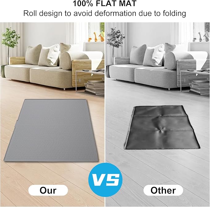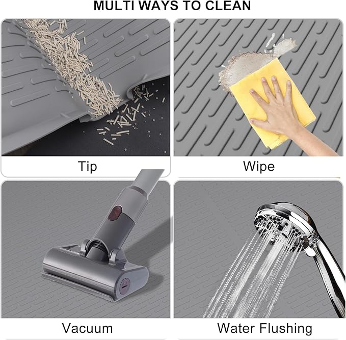- 【Stay in Place and Easy to Clean】This washable litter mat is sturdy and heavy duty,anti-slip bottom design,will not move on the floor at all,even for active cats.Washable cat litter mat has smooth silicone surface,easy to shake litters off,you can just fold and dump in the garbage.Also rinse or wipe or just vacuuming it can keep clean.No odor or liquids residue, it's so much easier to rinse than the mesh mats or the microfiber mats and dries 3X faster than fabric mats.Perfect for busy pet parents!