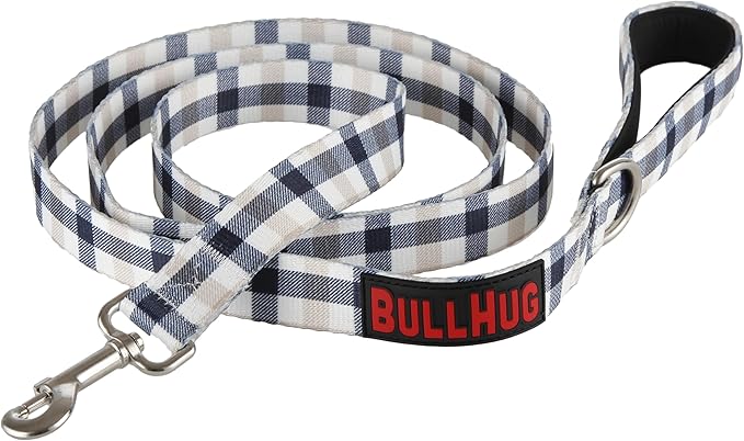 BULLHUG 6 FT Bulldog Leash with Padded Handle. Perfect for Bulldogs, French Bulldogs, Pugs & All Breeds. Leashes for Walking, Training Lead for Bulldogs (Tan Plaid)