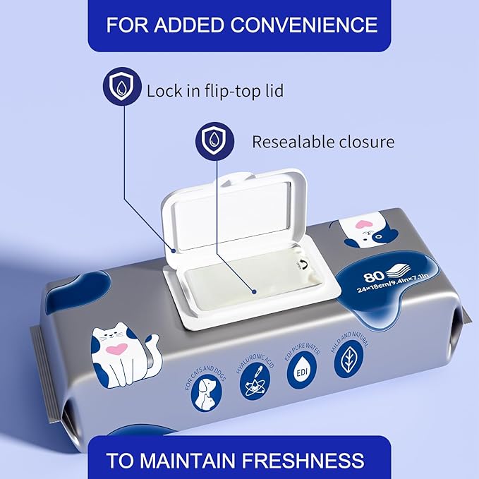 - 【Intimate Packaging Design】:Cat cleaning wipes secure lid helps keep puppy wipes fresh and moist, still lock in moisture, keeps dog cleaning wipes moist and ready whenever you need them. Allowing you to clean your pet at any time, whether at home, on the go, or on outdoor adventures.