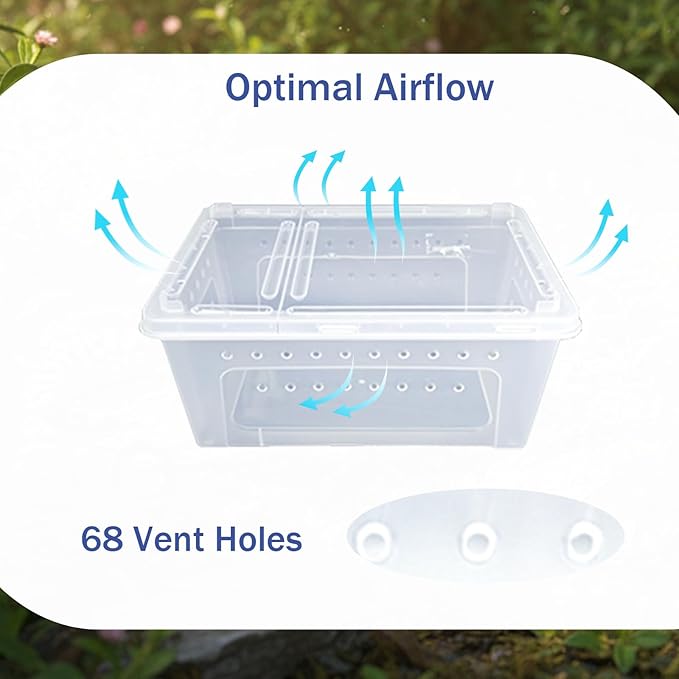 - 【Versatile Dual Enclosure Design】 Features one large and one small transparent reptile enclosure. Ideal for creating a main habitat and a separate feeding/breeding isolation tank. Also great for housing feeder insects or as a travel carrier.