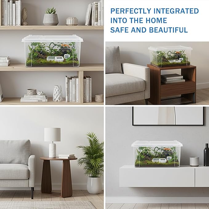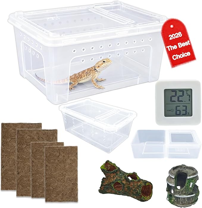 - 【Durable & Easy-Clean Materials】 Made from safe, non-toxic, and durable plastic, both the terrarium and feeding dish are built to last. The easy-to-clean coconut mat substrate simplifies tank maintenance, helping you keep your pet's vivarium clean and hygienic.