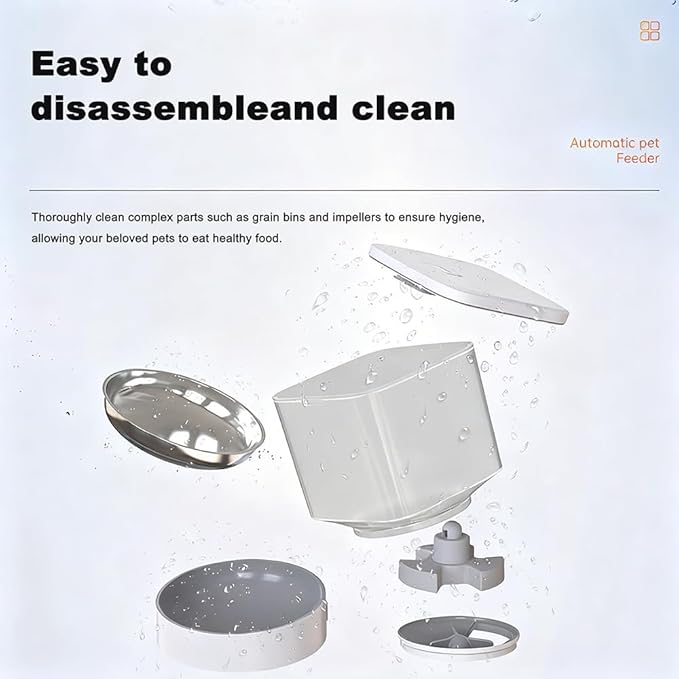 - 2. Advanced Anti-Jam Food System & 4.5L Capacity Our feeder features an optimized food dispensing mechanism to prevent clogging, ensuring reliable meals for your pet. The large 4.5L sealed dry food container, with its included desiccant pack, effectively locks out moisture to keep every piece of 3-16mm fresh and crunchy.