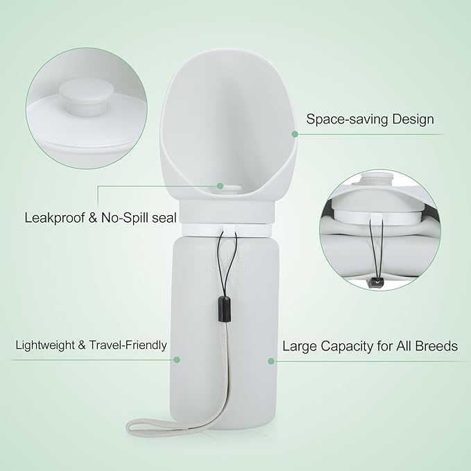 - Durable & Pet-Safe Construction: The dog travel water bottle is made from silicone, ensuring a safe drinking experience for your dog while the materials contribute to the product's overall resilience and long-term use