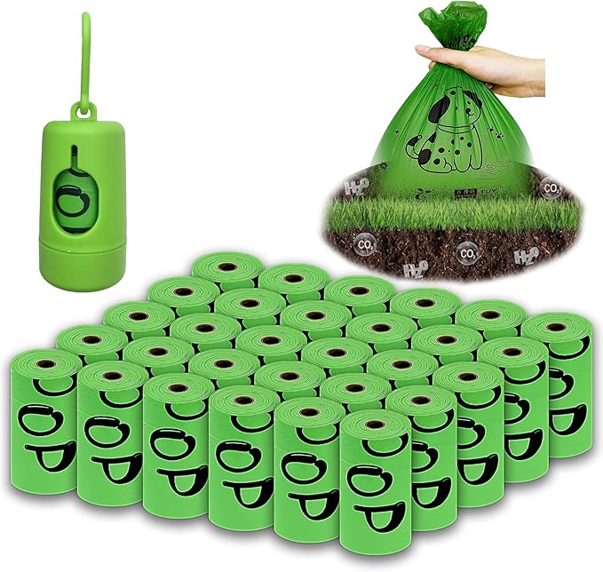100% plant-based Dog Poop Bags Rolls, ASTM D6400 & EN 13432 Compliant, 450 Poop Bags including dispenser, 13 in × 9 in green poop bags for dogs, Super thick 100% leak proof