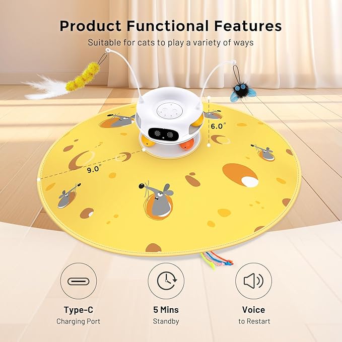 - 5-in-1 Multiple Gameplay Options: Zomisia interactive cat toy combines 5 classic play modes — hide and seek, 360° laser trajectory, dual track balls, feather, and simulated bird chirping. Designed to satisfy your cat's natural hunting instincts and provide engaging fun, our cat enrichment toy is a great choice for keeping your cat mentally and physically active.