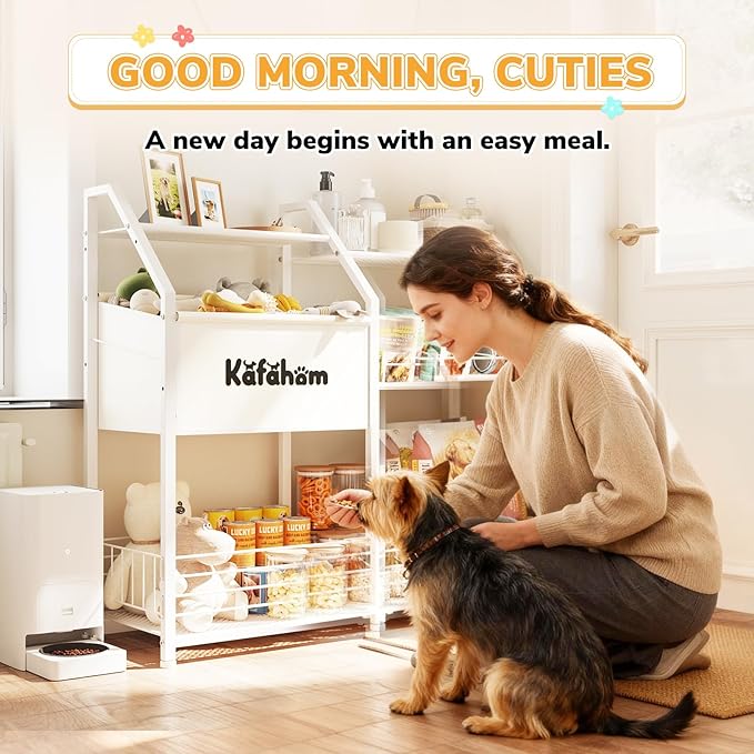 - Multifunctional Smart-Design Storage — This versatile pet storage organizer features specialized zones: a slanted can holder for secure storage, a canvas dog toy bin, and an oversized basket for dog supplies. Functioning as both a dog food storage cabinet and all-in-one pet organizers and storage system, it maintains perfect organization through scientifically designed compartments.